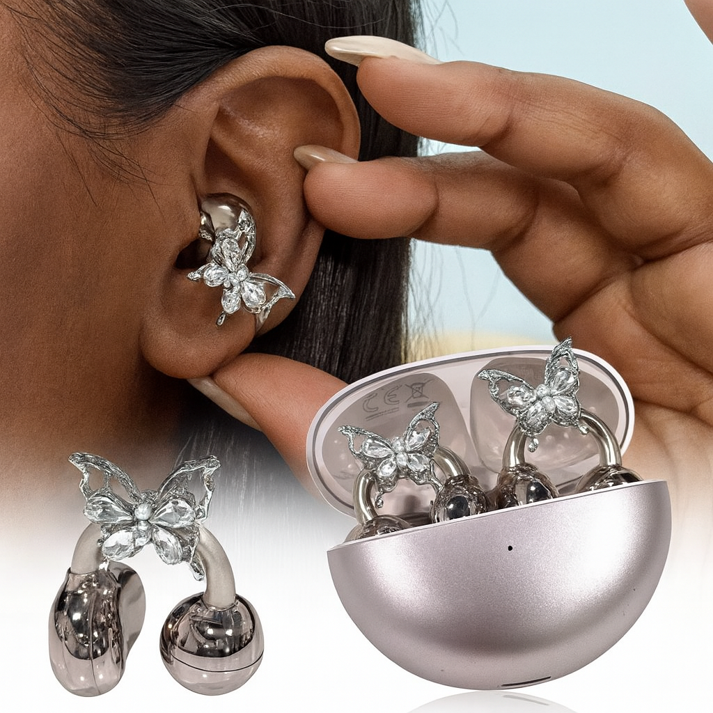 Ces écouteurs sans fil au design de boucles d’oreilles raffinées transforment chaque moment d’écoute en une expérience chic et unique. Leur silhouette délicate, ornée de finitions brillantes, attire immédiatement le regard et sublime votre style, même quand vous n’écoutez pas de musique.